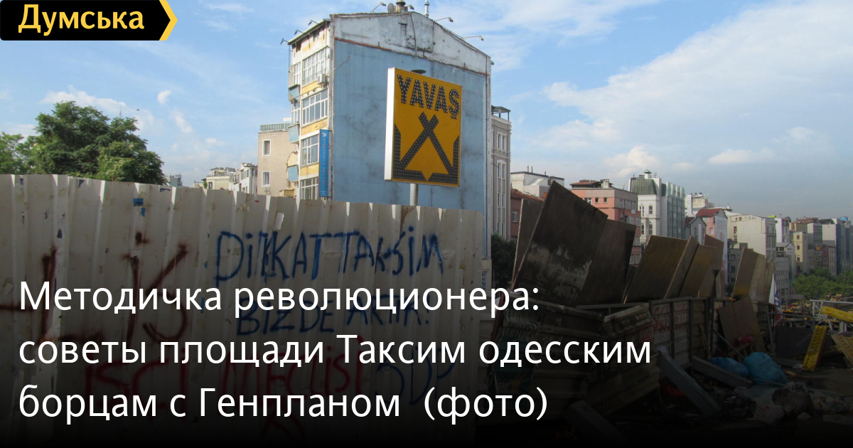 Анализируя опыт протеста на площади Таксим, вот что бы я посоветовал тем одесситам, собираются провести не очередной импотентский митинг с флагами и транспарантами, а настоящую акцию СОПРОТИВЛЕНИЯ.