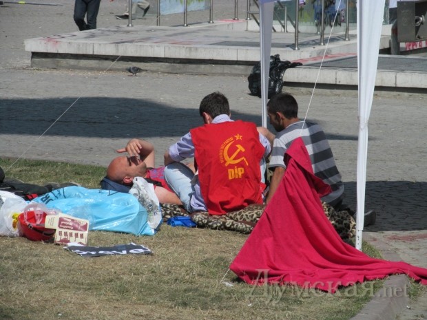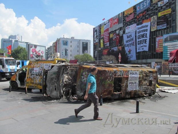 Когда на Таксиме и в окрестностях дошло до рукопашной, борцы противопоставили организованным отрядам полиции баррикады, численное преимущество и обычные булыжники, которые, как известно, являются первейшим оружием пролетариата (наравне с «коктейлями Молотова»).