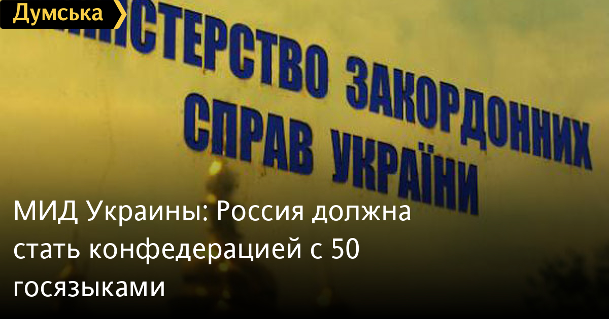 Министерство иностранных дел Украины рекомендует российской стороне заняться собственным государственным устройством и расширить языковые права национальных меньшинств, а также перейти на конфедеративный строй
