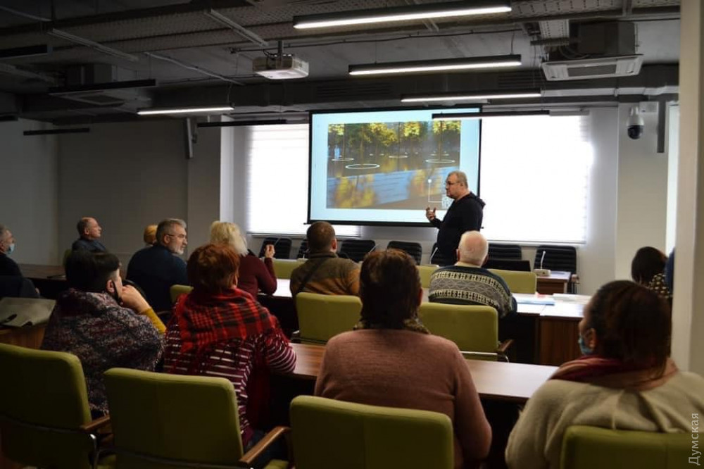 Концепцию мемориальных зон в честь Небесной Сотни и погибших на фронте российско-украинской войны, которые появятся в парке, окружающем Одесскую облгосадминистрацию, представили сегодня родственникам героев ее авторы — скульптор Михаил Рева и архитектор Ната Головченко.