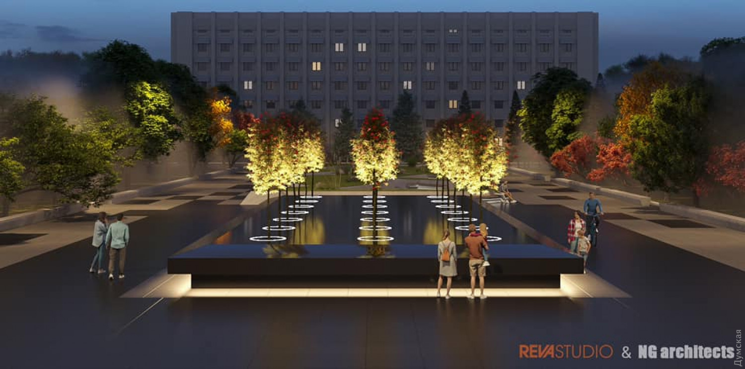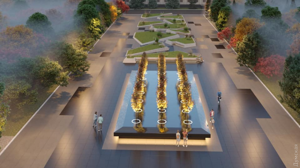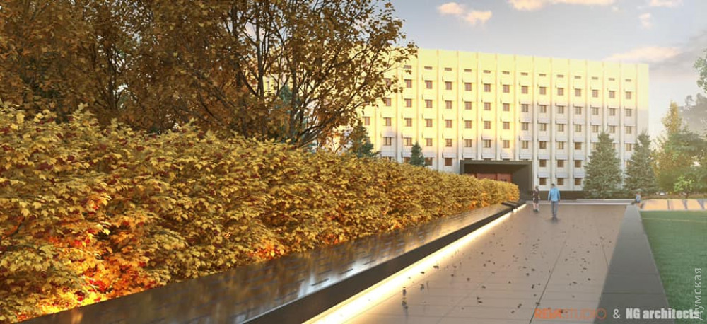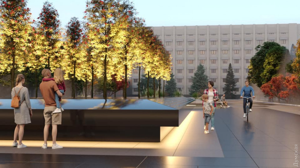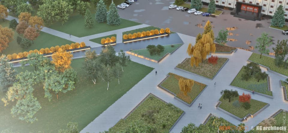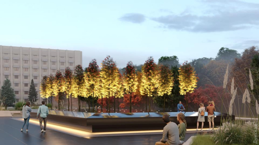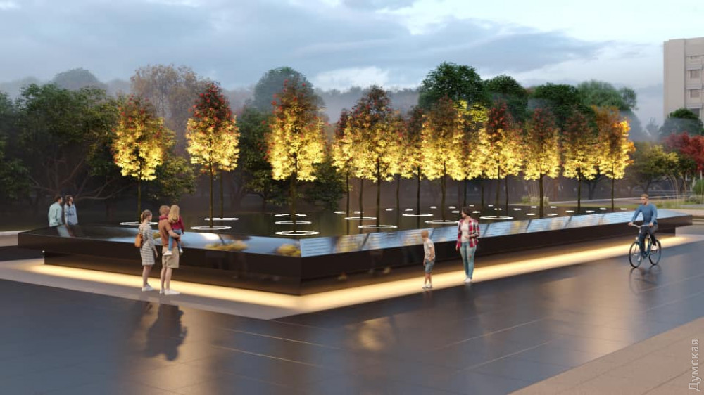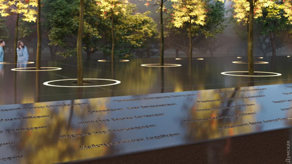 С обратной стороны ОГА появится мемориал героям АТО-ООС. Его оформят в том же стиле — фамилии погибших нанесут на черный гранит, а в центре объекта будут расти деревья.