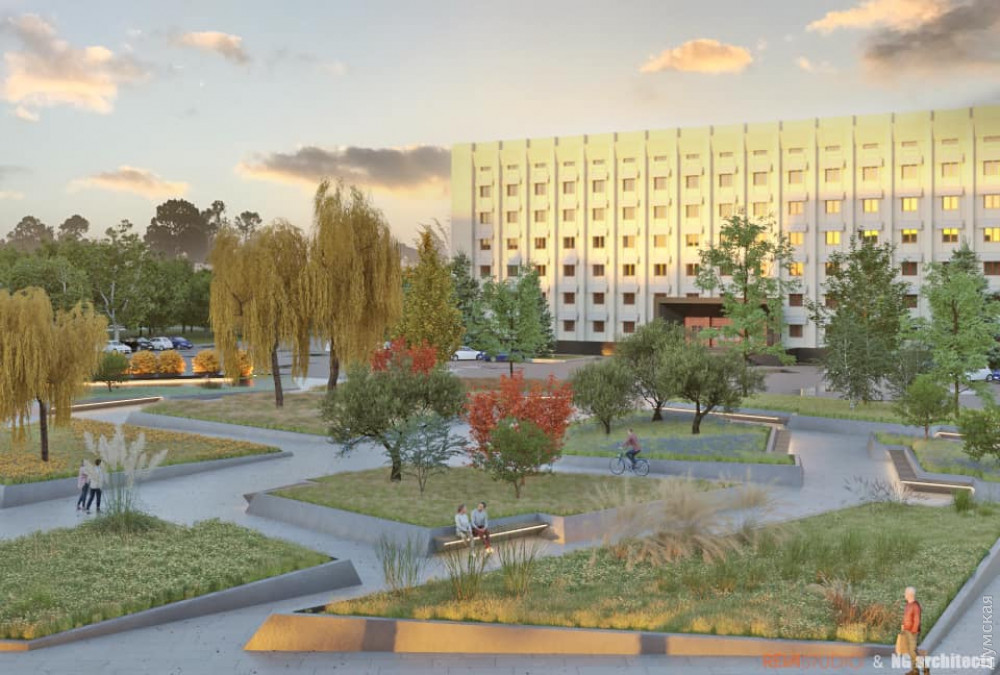 Согласно концепции, зеленую зону вокруг «кубика» серьезно реконструируют. Заметно изменится рисунок пешеходных трасс, часть клумб поднимут над уровнем парка.