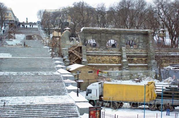 В Лунном парке и на Потемкинской лестнице заканчивается сооружение масштабных декораций к новому фильму Никиты Михалкова «Солнечный удар». Напомним, российский режиссер намерен экранизировать одноименный рассказ и дневниковые записи «Окаянные дни» писателя Ивана Бунина. Последние литератор-эмигрант сделал в 1918-1919-х годах в Москве и Одессе.