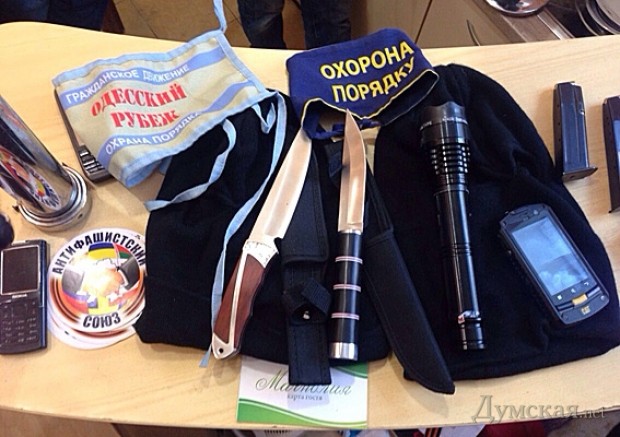 Оружие, боеприпасы, спецсредства и агитационные материалы — все это нашли правоохранители в доме одного из активных участников событий 19 февраля около Одесской облгосадминистрации, когда пострадали митингующие и журналисты.