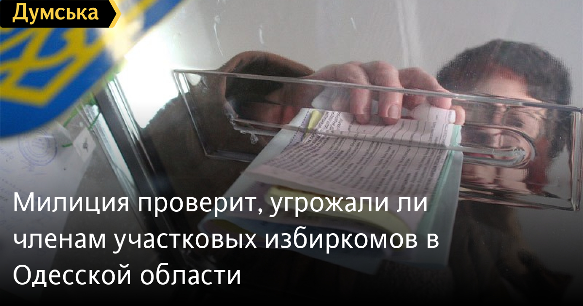Об этом сообщает пресс-служба ведомства. Так, милиция проверит сообщение о том, что неизвестные угрожали членам участковых комиссий Любашевского, Коминтерновского и других районов с требованием отказаться от работы в составе комиссий.