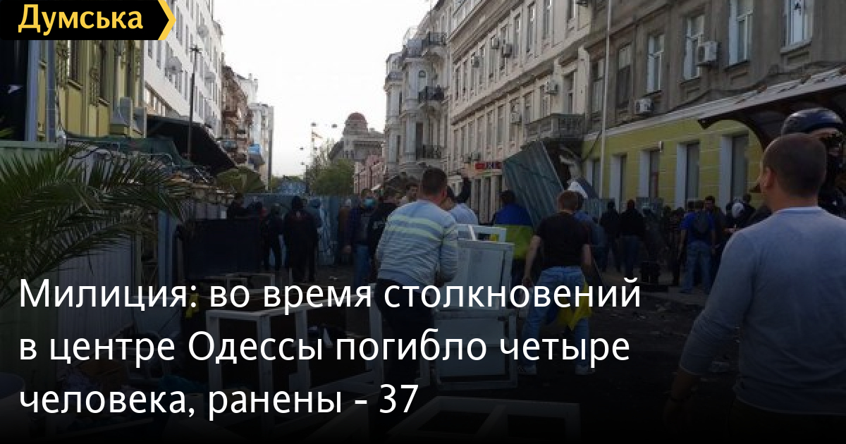 По последним данным областного управления внутренних дел, в результате четырехчасовых уличных боев в центре Одессы погибли четыре человека и 37 получили травмы различной степени тяжести.