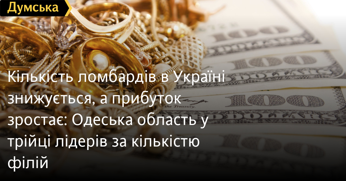 Кількість ломбардів в Україні знижується, а прибуток зростає: Одеська область у трійці лідерів за кількістю філійУ трійці лідерів за кількістю філій ломбардів опинилася Одеська область. Їх у нашому регіоні станом на лютий 2025 року налічується 306. За даними аналітиків YouControl, більше тільки в Дніпропетровській області (500) і в Києві (457). Загалом станом на лютий цього року в Україні було зареєстровано 108 компаній (ломбардів), деякі з яких мають сотні філій по всій країні. За останні п'ять років їхня кількість зменшилася майже втричі: з 302 компаній у 2020-му до 108 зараз. Водночас розмір активів істотно не змінився: 2020 року він становив 3,85 млрд грн, а в листопаді 2024 року — 3,98 млрд грн. За даними НБУ, за дев'ять місяців 2024 року 101 ломбард (які подали звітність) отримав понад 3 млрд грн доходу. У 2023 році цей показник становив 2,6 млрд грн, отриманих 136 ломбардами. За дев'ять місяців минулого року компанії надали понад мільйон кредитів на загальну суму 3,13 млрд грн, за аналогічний період 2023 року було видано 4,7 млн кредитів на 10,2 млрд грн. Помітили помилку? Виділяйте слова з помилкою та натискайте control-enter |