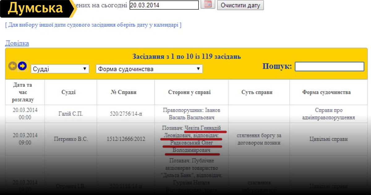 Милые бранятся. Экс-глава одесской фракции «Батькивщины» судится из-за долга с руководителем облорганизации партииЭкс-глава фракции «Батькивщины» в Одесском горсовете Геннадий Чекита судится с лидером облорганизации партии, бывшим нардепом Олегом Радковским. Чекита требует вернуть ему денежный долг. Гражданский иск любителя таблицы умножения рассматривает Киевский райсуд Одессы. СМЕРТЬ РОСІЙСЬКИМ ОКУПАНТАМ! Помітили помилку? Виділяйте слова з помилкою та натискайте control-enter