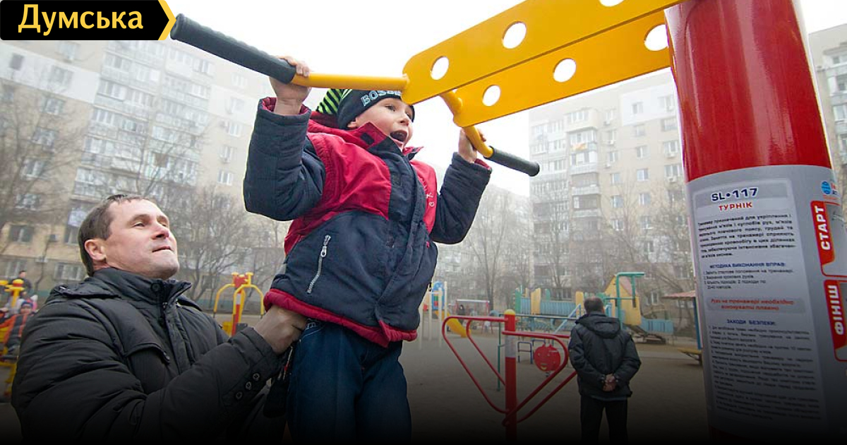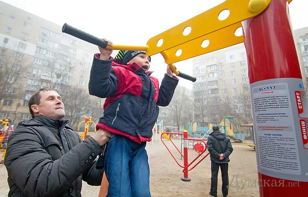 Сегодня на проспекте Маршала Жукова, за рынком «Селянка», состоялось открытие площадки спортивных тренажеров, которые в частном порядке подарил будущему футбольному скверу министр Украины по делам семьи, молодежи и спорта Равиль Сафиуллин. Двенадцать новых тренажеров расположились на не задействованной до того части детской площадки, недалеко от сгоревшего в октябре музея футбола.
