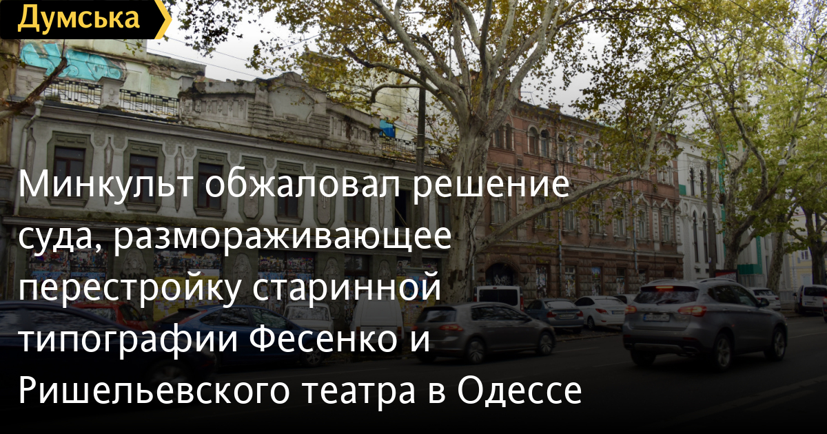 Апелляционную жалобу на определение Одесского окружного административного суда, остановившего действие предписания о прекращении строительства жилого дома на месте типографии Ефима Фесенко и соседнего Ришельевского театра (кинотеатр имени Короленко) на Ришельевской, 47 и 49, подало Министерство культуры Украины.