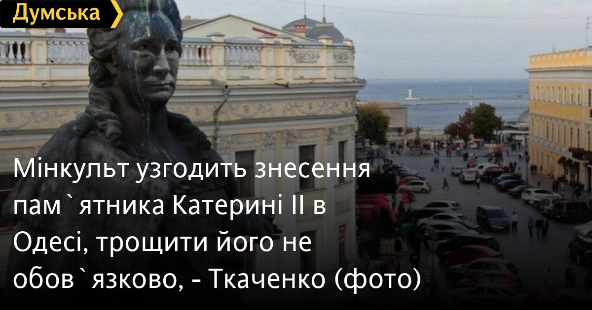 «Щодо пам'ятника Єкатерині ІІ в мене очевидна думка: навряд його потрібно залишати. Проте це першочергово має бути рішення одеських депутатів з відповідним зверненням до нас. Якщо воно надійде — не сумнівайтеся, ми дамо згоду», — сказав Ткаченко.