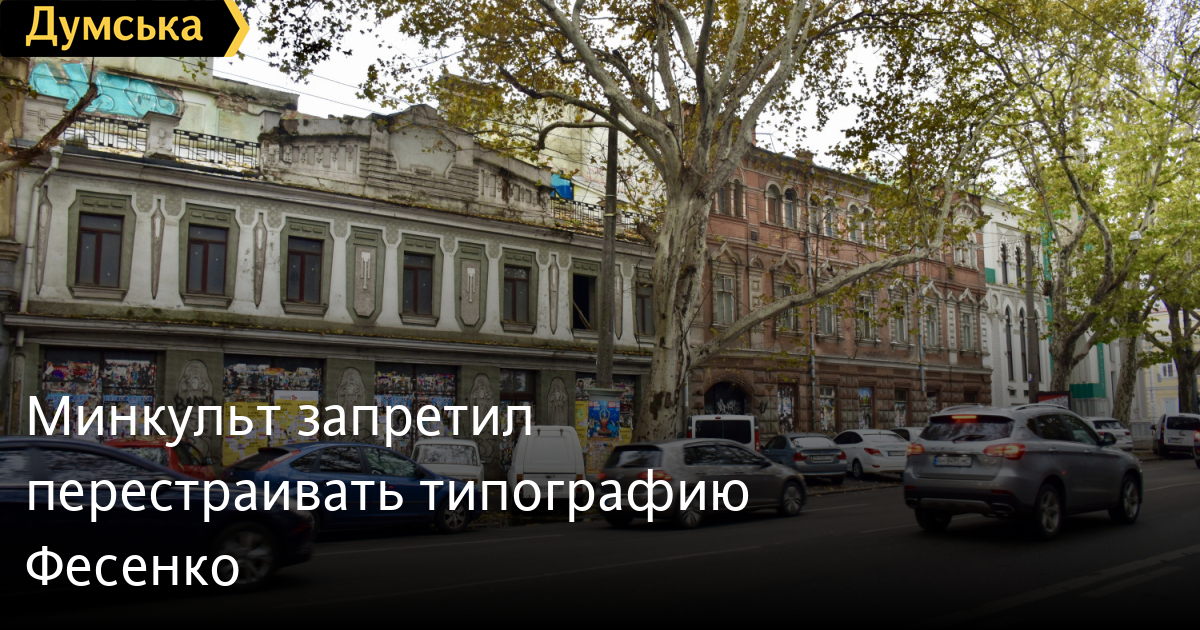 Министерство культуры Украины направило компаниям «Одеса-Сіті» и «Мартен Груп» предписание о запрете проведения строительных работ на месте старинной типографии Ефима Фесенко и соседнего Ришельевского театра (кинотеатр имени Короленко) на Ришельевской, 47 и 49.