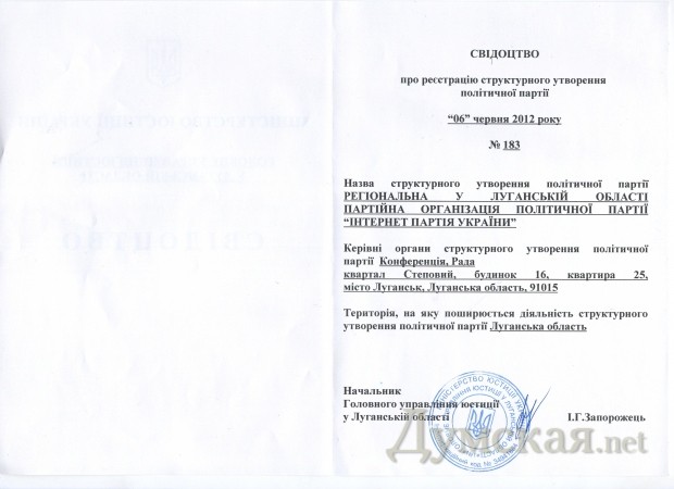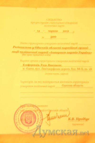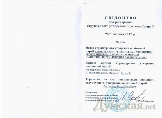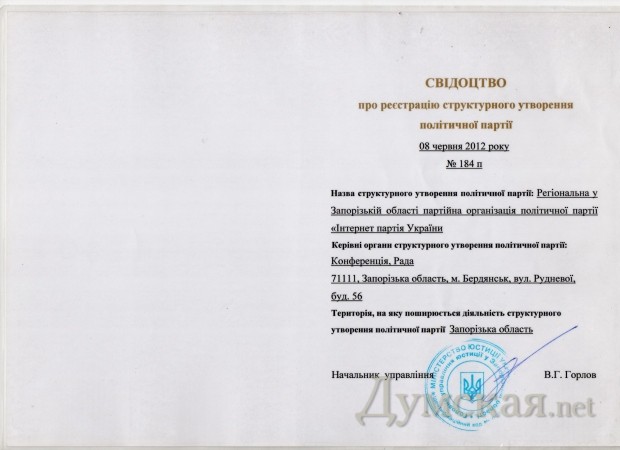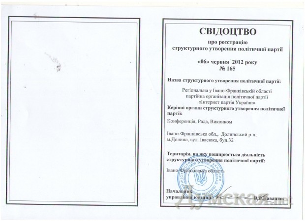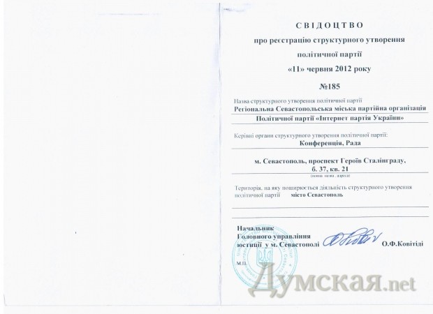 В связи с невыполнением требований закона «О политических партиях в Украине» Постановлением Окружного административного суда г. Киева от 23.01.2013 года по делу № 2а-11091/12/2670 было принято решение об аннулировании свидетельства Интернет партия Украины, говорится в официальном разъяснении.