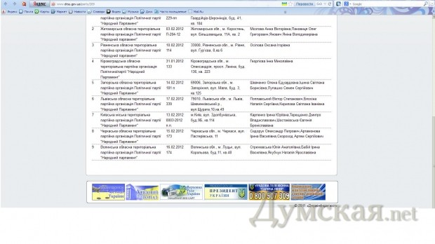 Сайт Государственной регистрационной службы тоже противоречит сам себе. Так, по данным сайта, у Интернет партии Украины 9 ячеек. Однако, судя по всему, в регистрационной службе запутались и обозначили ячейки Интернет партии как ячейки партии «Народный парламент».