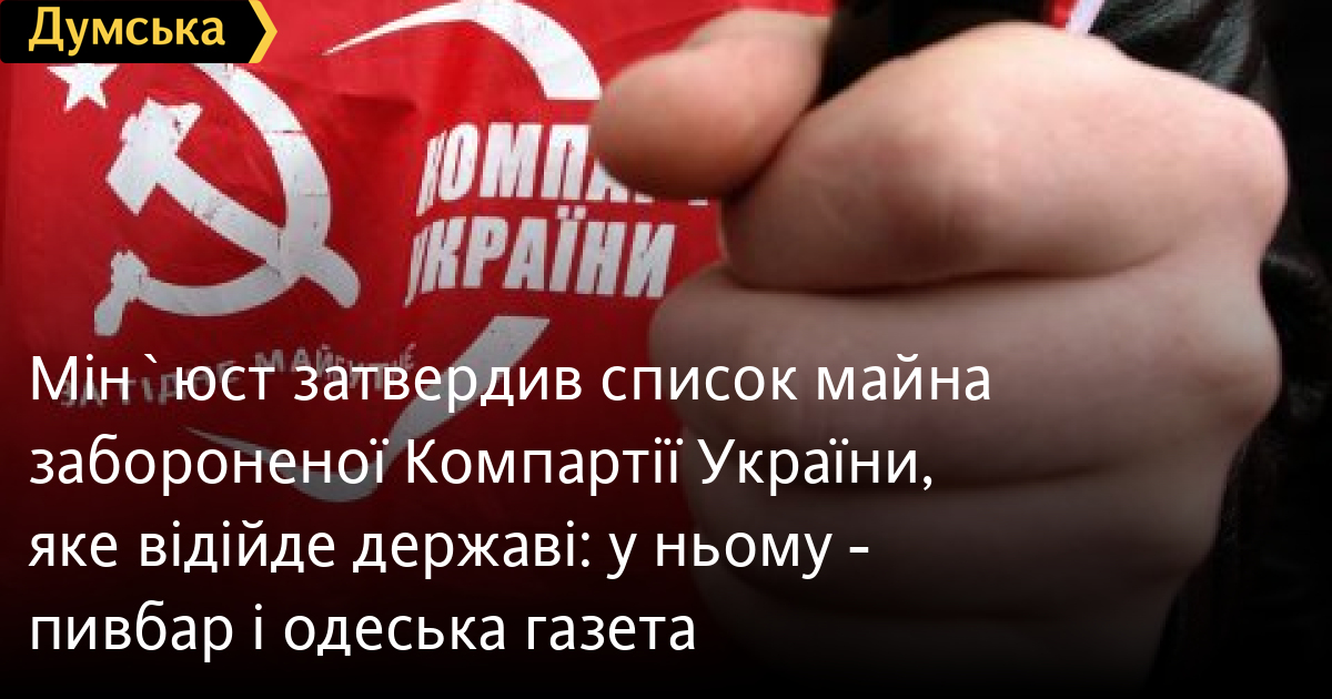 Мін`юст затвердив список майна забороненої Компартії України, яке відійде державі: у ньому — пивбар і одеська газетаПерелік майна, коштів та інших активів забороненої судом Комуністичної партії України, її обласних, міських, районних організацій, первинних осередків та інших структурних утворень, які передаються державі, затвердив міністр юстиції Денис Малюська. Його наказ опублікувала пресслужба відомства. У списку, який можна завантажити за цим посиланням, 84 пункти. Зокрема, державі відійде різна нерухомість, зокрема пивний бар у нещодавно звільненому Лимані Донецької області, корпоративні права, а також торговельні марки КПУ. В Одеській області конфіскуються корпоративні права на газету «Правда Причорномор'я», що зареєстрована за адресою: вул. Академіка Філатова, 62/2, кв. 51, та частина приміщення в Балті. СМЕРТЬ РОСІЙСЬКИМ ОКУПАНТАМ! Помітили помилку? Виділяйте слова з помилкою та натискайте control-enter |
