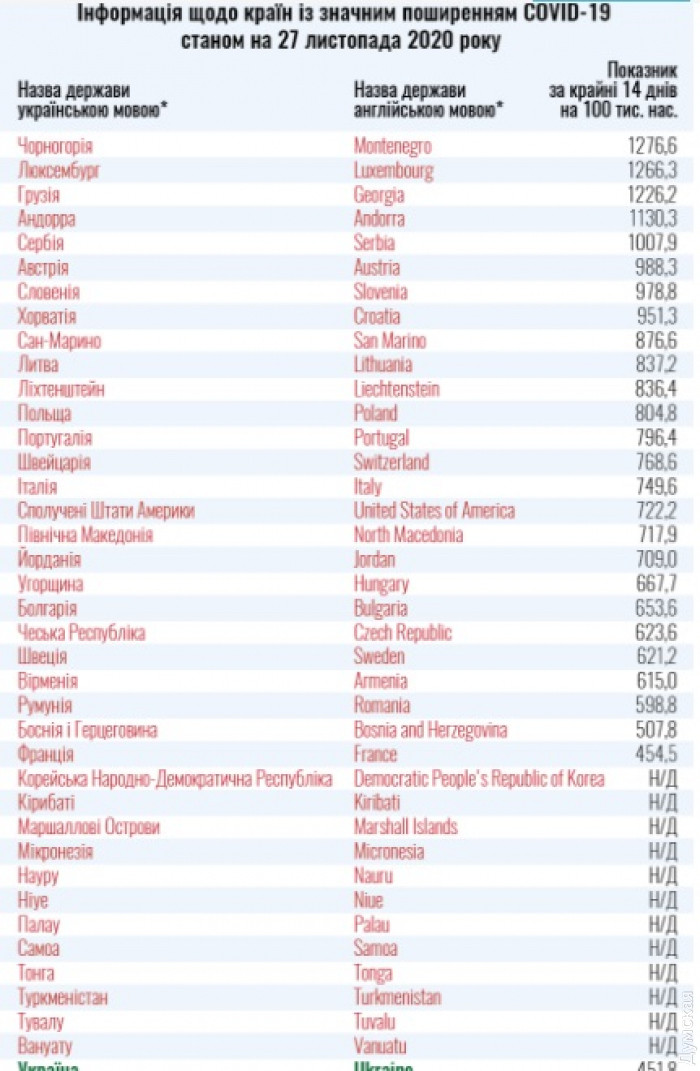 Министерство здравоохранения Украины обновило список стран «красной» и «зеленой» зон. По состоянию на 27 ноября в «красном списке» Украины находятся 38 стран. Среди них Соединенные Штаты, Грузия, Франция, Болгария, Швейцария, Румыния, Польша, Португалия, Словения, Черногория, Хорватия, Армения, Литва и другие. В «зеленой зоне» оказались Испания, Бельгия, Великобритания, Нидерланды, Словакия, Кипр и другие. С полным списком можно ознакомиться по ссылке. СМЕРТЬ РОСІЙСЬКИМ ОКУПАНТАМ! Помітили помилку? Виділяйте слова з помилкою та натискайте control-enter Новини по цій темі: 4 березня 2023: "Вакцини-довгожителі", або Як щеплення проти COVID-19 перетворилися в Україні на небезпечний ритуал 27 січня 2023: МОЗ зобов`язали опублікувати договори на закупівлю вакцин проти COVID-19: апеляційний суд задовольнив позов журналіста "Думської" 11 січня 2023: За тиждень в Одесі зафіксовано 159 випадків ковіду 4 січня 2023: За тиждень в Одесі зареєстровано 113 випадків ковіду |
