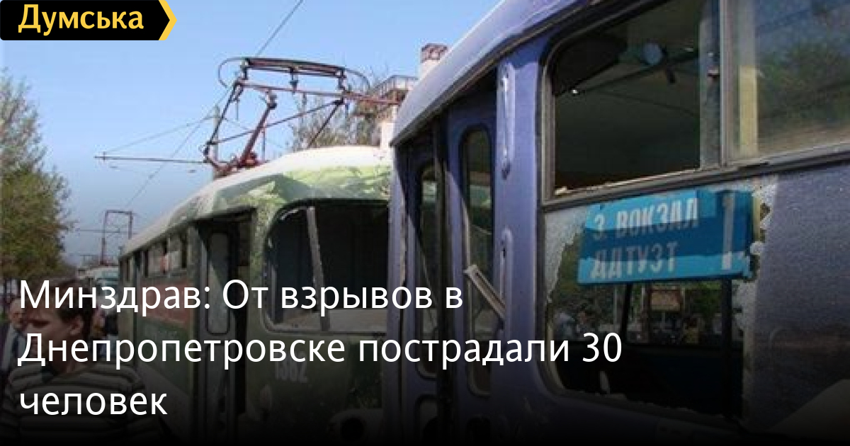 От взрывов в Днепропетровске пострадали 30 человек, в том числе 10 детей. Об этом в субботу сообщила пресс-служба Министерства здравоохранения, пишет «Украинская правда».