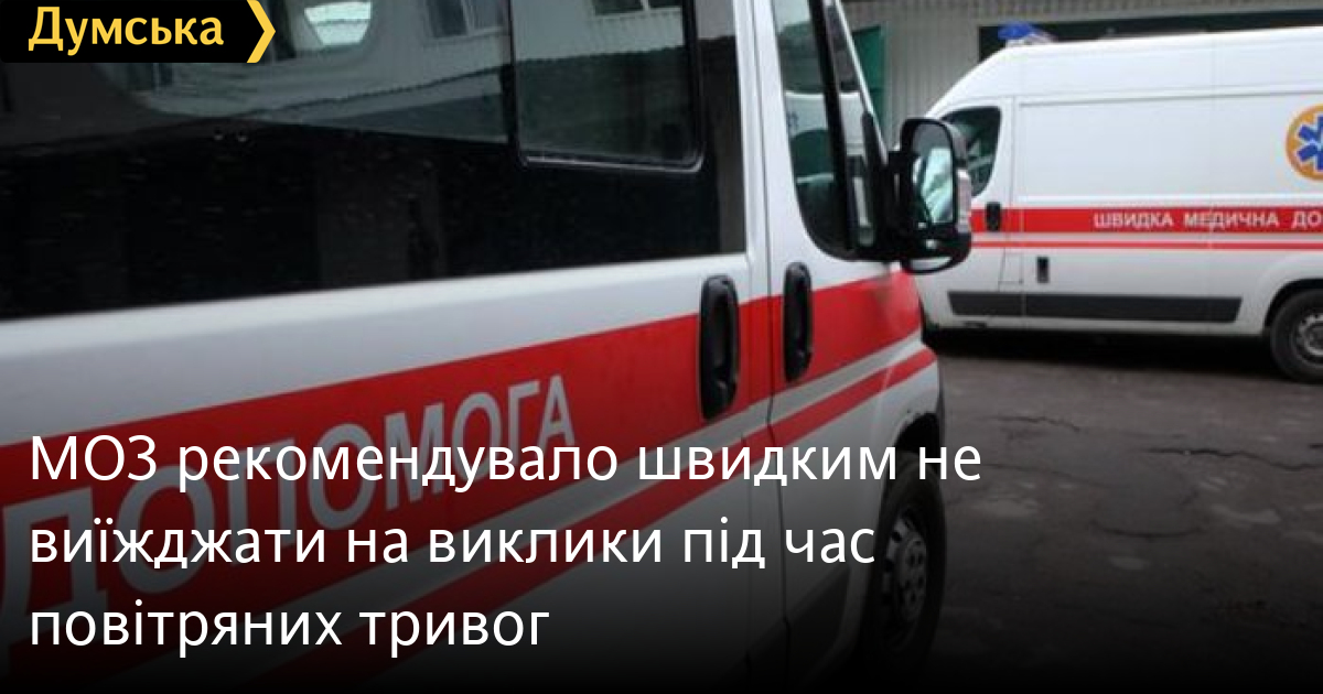 Міністерство охорони здоров'я України, побоюючись за життя медиків, рекомендувало бригадам екстреної медичної допомоги виїжджати під час повітряної тривоги лише в разі критичних викликів.