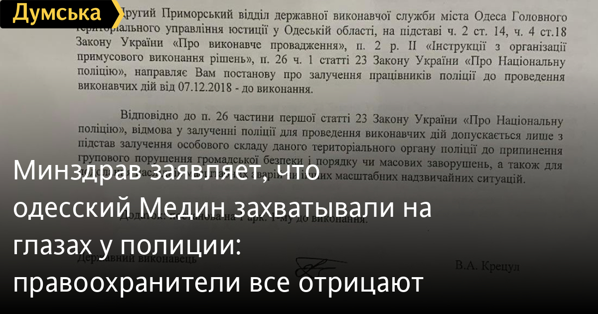 Об осуществлении любых исполнительных производств в государственном университете, в частности, о планах захвата и блокировки университета государственные исполнители обязаны были сообщить МОЗ Украины как основателю и владельцу государственного университета, но на данный момент любая информация по этому поводу в министерство отсутствует».