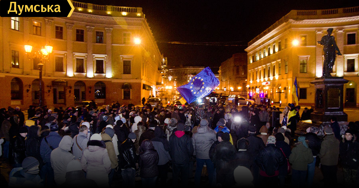 Сегодня на митинге возле Дюка было в разы больше людей, чем раньше. Народ просыпается. Я уверен, что Украина будет свободной демократической европейской державой. Люди не будут терпеть рабство. Совка и империи больше не будет. Каждый будний день в 18.00, в воскресенье — 12 ч. Группа в фейсбуке — Одесса Курс-Евро.