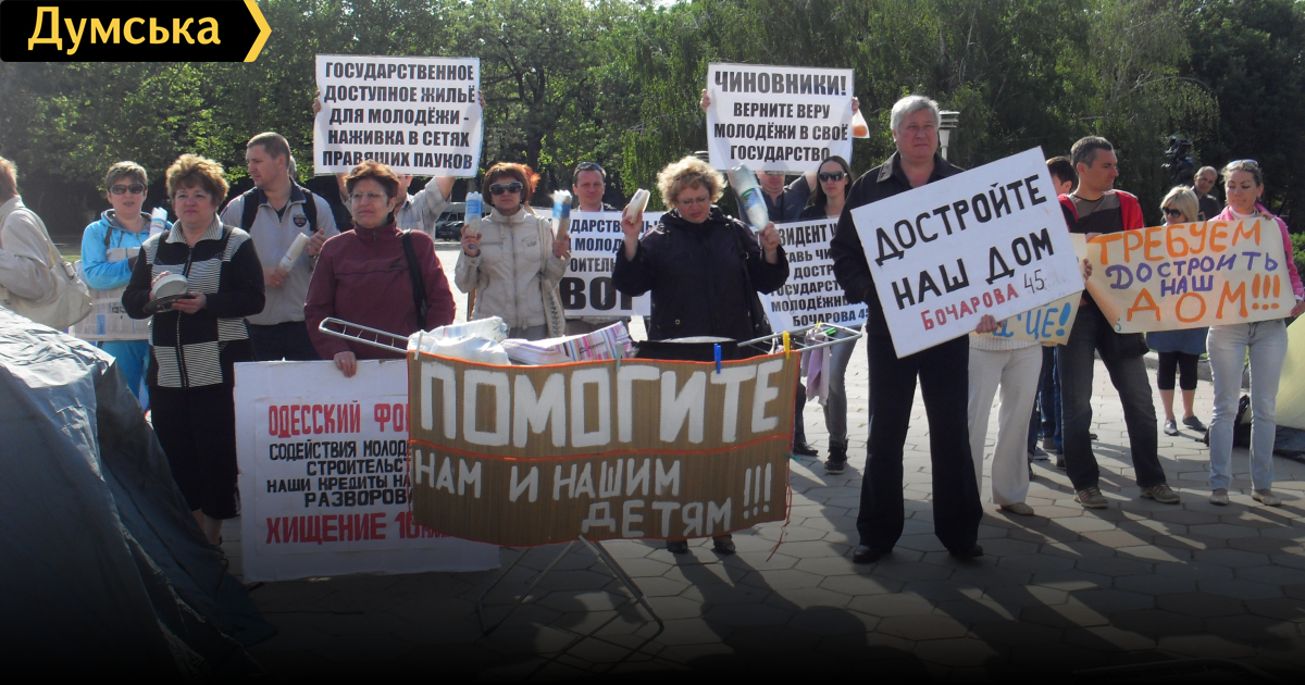 Митинг на проспекте Шевченко. Обманутые одесситы пришли с палатками и раскладушками и требуют достроить их дом