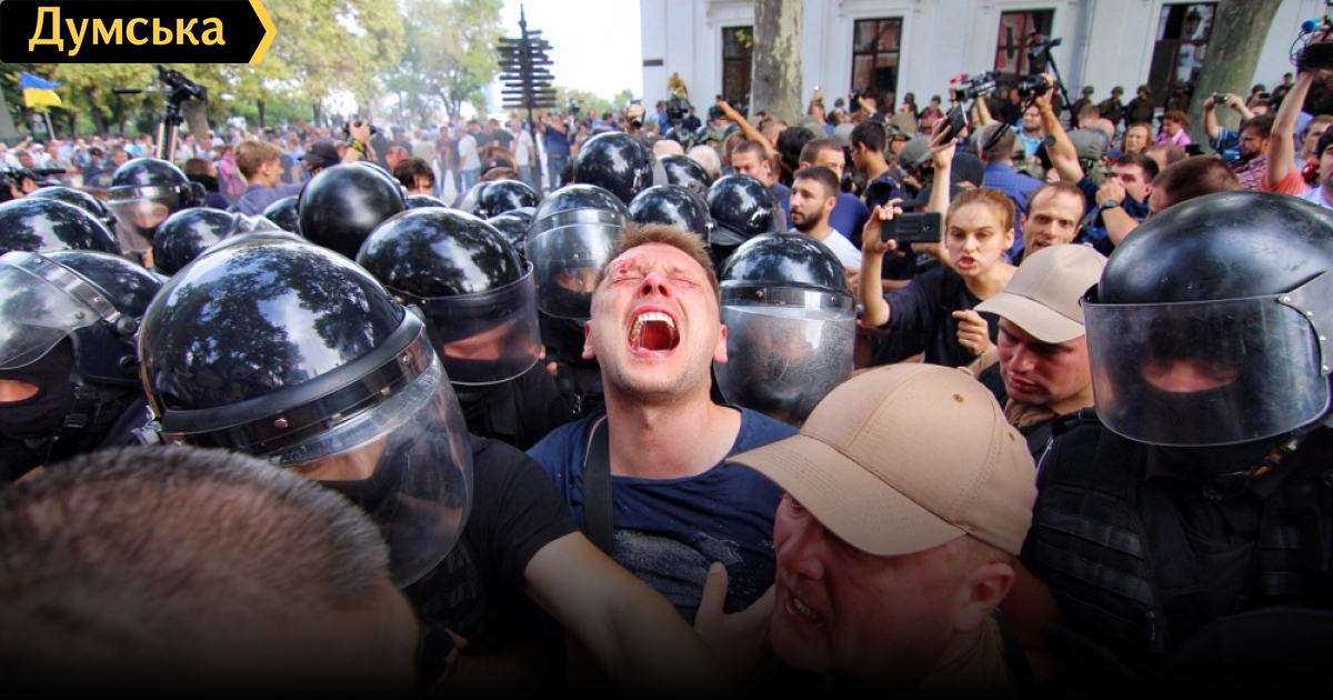 Беспорядки возле мэрии: оппозиционеры с боем прорываются на сессию (обновляется, фото)На Думской площади и в окрестностях вспыхнули массовые беспорядки. Представители «Свободы», «Национального Корпуса» и других оппозиционных организаций пытаются прорваться в мэрию, где должна была начаться сессия горсовета. На месте работают корреспонденты «Думской». НАЧАЛО ОНЛАЙНА, 9:30. Под зданием мэрии, где только что началась сессия горсовета, проходит митинг. Как сообщает корреспондент «Думской», в нем участвуют около 500 человек. Перед собравшимися выступил лидер одесской ячейки «Свободы», экс-нардеп Павел Кириленко. Он заявил, что после трагедии в лагере «Виктория» городской голова Геннадий Труханов должен уйти в отставку, а городской совет — самораспуститься. Буквально через несколько минут после начала митинга между участниками и правоохранителями произошла потасовка из-за того, что один из патриотов пришел на акцию в балаклаве и отказался ее снять по требованию полицейских. ОБНОВЛЕНО В 10:23. Произошла еще одна потасовка между митингующими и бойцами Нацгвардии, которые оцепили мэрию. Активисты пытались пройти в зал, но их не пустили. Активисты скандируют «Труханова геть!». Митингующих и нацгвардейцев разделили сотрудники полиции. ОБНОВЛЕНО В 10:27. Представители «Свободы» и «Национального Корпуса» пытались войти в зал, но муниципальная охрана их не пустила, мотивируя это тем, что зал переполнен. Дескать, смотреть можно и по трансляции. ОБНОВЛЕНО В 10:39. Свободовцы и «азовцы» («Национальный Корпус») переместились к боковому входу в муниципалитет. При этом основная масса людей стоит на Думской площади и молчит. ОБНОВЛЕНО В 10:49. После короткой перепалки под боковым входом свободовцы решили вернуться на площадь. ОБНОВЛЕНО В 10:50. Новая потасовка с полицией, и оппозиционеры снова идут к боковому входу. ОБНОВЛЕНО В 10:58. Ожесточенная драка у бокового входа. Вмешались патрульные, досталось и журналистам. В сессии объявлен перерыв. ОБНОВЛЕНО В 11:01. На площади зажгли фальшфейеры и скандируют «Труханова геть!». ОБНОВЛЕНО В 11:10. Новая потасовка. Полиция применила газ. Задержаны несколько активистов. Также среди митингующих есть несколько пострадавших. У них разбиты головы. Митингующие также применили газ и оттеснили полицейских. ОБНОВЛЕНО В 11:27. Павлу Кириленко удалось попасть в мэрию, представившись нардепом. Через 10 минут он вышел и заявил, что там «окопались сепаратисты». Сейчас свободовцы идут в облпрокуратуру требовать роспуска горсовета. Потом они хотят посетить с таким же требованием губернатора. ОБНОВЛЕНО В 11:30. Обращение ГУНП: «Полицейские призывают митингующих не нарушать общественный порядок. Все события, которые происходят у Одесского горсовета, документируются работниками полиции. Им, а также лицам, принимавшим в них участие, в дальнейшем будет дана надлежащая правовая оценка. Призываем участников акции не совершать противоправных действий и не нарушать общественный порядок». ОБНОВЛЕНО В 11:31. Оппозиционеры пошли к облпрокуратуре. Сессия возобновилась. ОБНОВЛЕНО В 11:36. Добавлено видео потасовки. ОБНОВЛЕНО В 11:40. Активисты пришли к зданию прокуратуры. У ворот прокуратуры произошла небольшая потасовка. Сейчас митингующие зашли во двор прокуратуры. Они ждут прокурора Одесской области, который, по их словам, должен к ним выйти. ОБНО