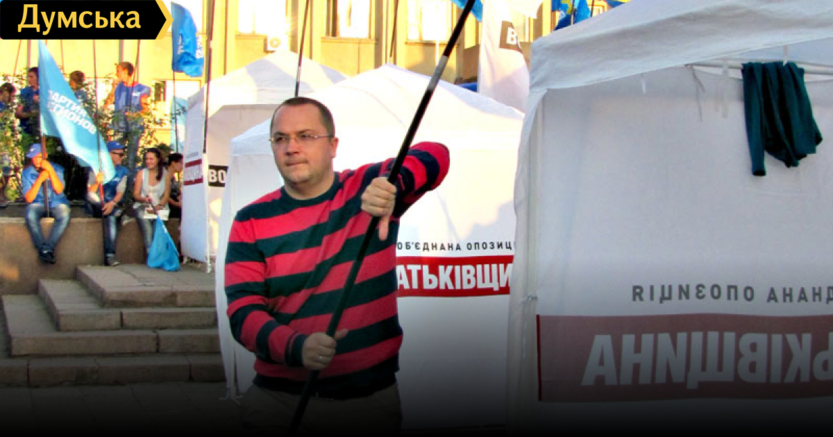 Перед началом акции активист объединенной оппозиции стал рассказывать о сегодняшнем состоянии экономики Украины и ее перспективах. Говорить ему приходилось, прорываясь сквозь звуковую интервенцию политических противников. Но внезапно стало тихо – а минут через пять вдруг со стороны здания исполкома поплыл дым…