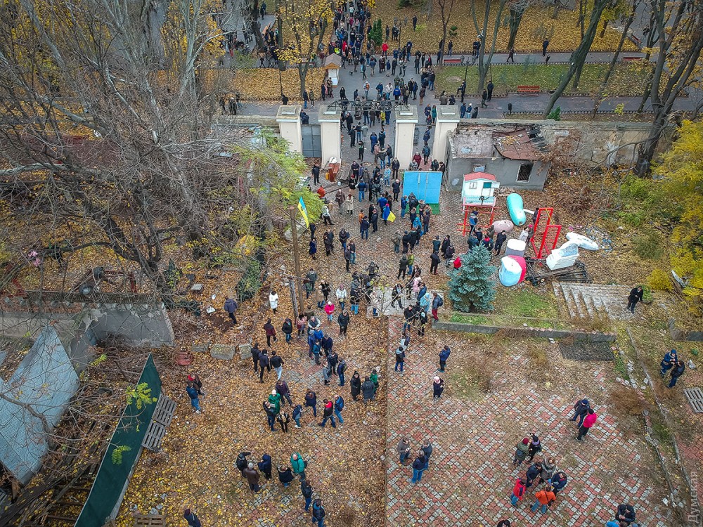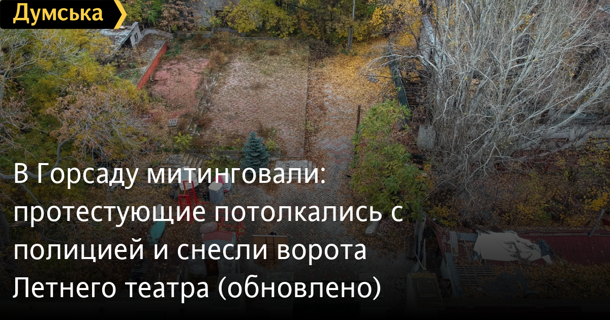 Активисты сняли ворота Летнего театра. Шеф одесской полиции Дмитрий Головин попытался утихомирить буянов, однако те стали его толкать. Сотрудники полиции вступились за начальника. Произошли несколько столкновений с правоохранителями. В настоящее время активисты заблокированы на территории театра кордоном полиции.