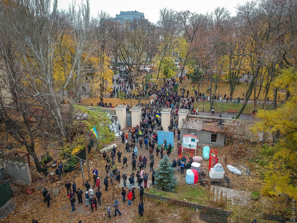Накал страстей немного спал. Активисты собираются нести снесенные ворота театра к зданию одесской мэрии.