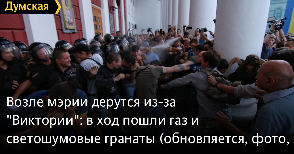 Возле мэрии дерутся из-за «Виктории»: в ход пошли газ и светошумовые гранаты (обновляется, фото, видео)