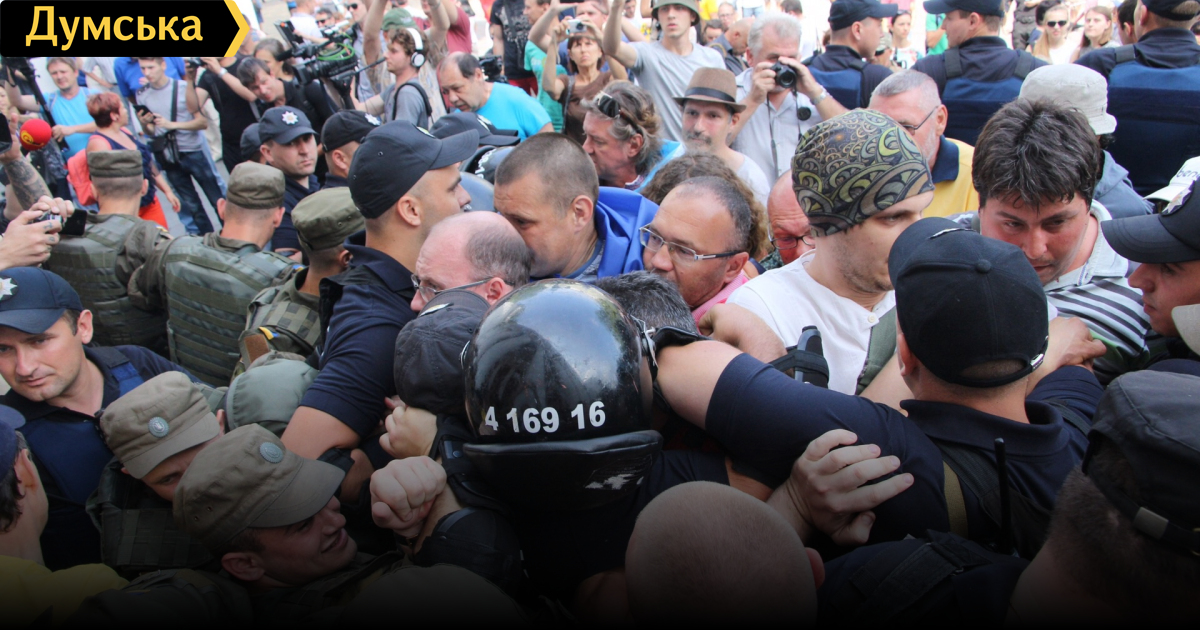 Только что на Думской площади произошла потасовка между протестующими и правоохранителями.