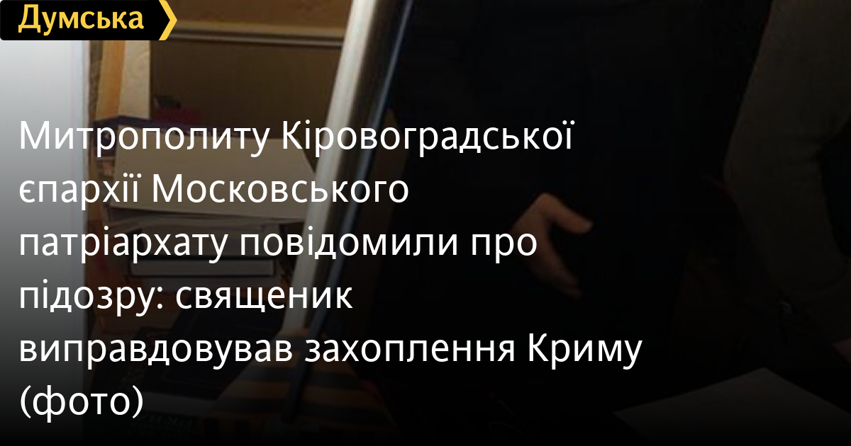Колишнього керівника Кіровоградської єпархії МП підозрюють у підривній діяльності проти України.