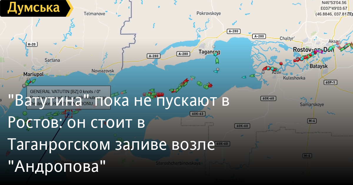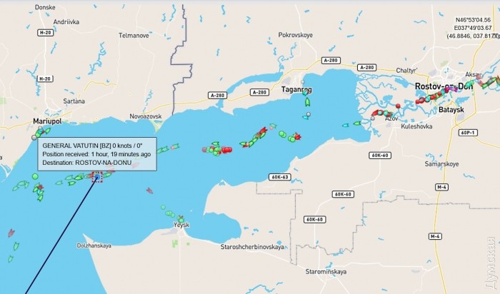 Многострадальный теплоход «Генерал Ватутин», проданный россиянам, ночью прошел Керченский пролив и Азовское море.