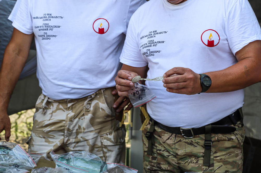 Несколько дней назад в одном шурфе были обнаружены гильзы от патронов калибра 7.62 для револьвера системы Наган, которые использовали красные каратели, рассказал «Думской» руководитель общественной организации «Пошук-Дніпро» Андрей Бижко. Он трудится здесь вместе с коллегами из одесской организации «Воинская доблесть» и криворожской «Память потомков».