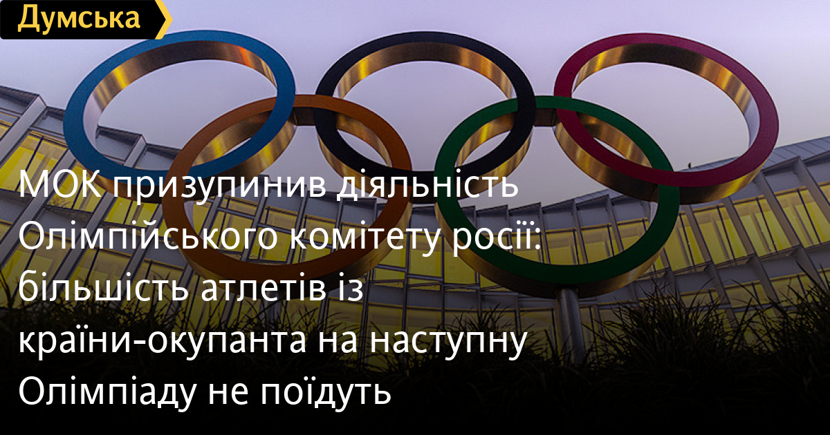 МОК призупинив діяльність Олімпійського комітету росії: більшість атлетів із країни-окупанта на наступну Олімпіаду не поїдутьМіжнародний олімпійський комітет із 12 жовтня призупинив діяльність Олімпійського комітету росії. У МОК повідомили, що це стало наслідком одностороннього включення 5 жовтня до Олімпійського комітету країни-агресора регіональних організацій на тимчасово окупованих територіях Донецької, Луганської, Запорізької та Херсонської областей. «Це є порушенням Олімпійської хартії, оскільки порушує територіальну цілісність Національного Олімпійського комітету України, визнану Міжнародним олімпійським комітетом», — повідомили в НОК. Олімпійський комітет більше не отримуватиме фінансування. Що більш важливо, комітет країни-агресора втратив можливість висувати спортсменів на участь в Олімпіаді. НОК зберігає за собою право залучити до змагань у Парижі 2024 року лише деяких росіян, які зможуть брати участь як нейтральні атлети. СМЕРТЬ РОСІЙСЬКИМ ОКУПАНТАМ! Помітили помилку? Виділяйте слова з помилкою та натискайте control-enter |
