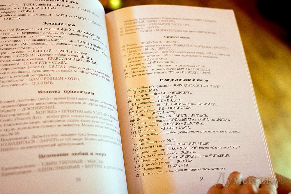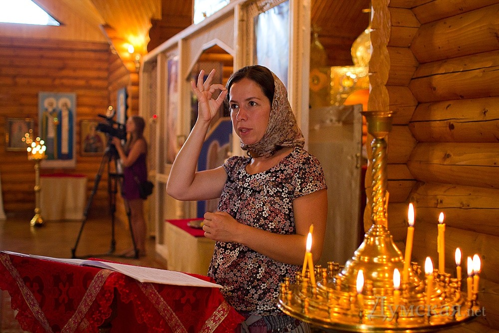 Впервые за всю историю нашего города в одесском храме Святой преподобной мученицы Елизаветы, который находится на территории областной детской кожно-венерологической больницы на улице Вавилова, глухонемые города смогли принять участие в литургии, в которой все молитвы и церковные песнопения сопровождались сурдопереводом. Кроме того, слабослышащие прихожане смогли с помощью переводчицы Екатерины Дятловой исповедаться. Идея пригласить на богослужения сурдопереводчика принадлежит настоятелю храма, протоиерею Святославу Минаеву. «Недавно я крестил ребенка из семьи слабослышащих людей и столкнулся с проблемой в объяснении смысла таинства, — рассказывает священник. — Я обратился к одесским специалистам, но они отказались. В Украине на постоянной основе работают переводчики для слабослышащих всего в трех городах: Киеве, Львове и Черновцах. Я обратился в Киевский Свято-Троицкий монастырь и к нам согласилась приехать ведущий специалист по православному сурдопереводу Екатерина Дятлова». По словам переводчицы, когда работаешь в храме, приходится переводить дважды — с церковно-славянского на современный русский, а потом уже передавать смысл древних посланий с помощью жестов. «Здесь важен каждый жест, способный передать все нюансы Евангелия, так чтобы не было никаких искажений. Все слова, а точнее их смысл, должен быть переведен максимально точно. Кроме того, нужно объяснять, что читает священник, почему церковный хор поет именно это. Когда мы разрабатывали православные жесты, было очень сложно. Их не существовало в светском языке. Нам пришлось обращаться к питерцам и к львовянам, которые раньше начали этим заниматься. А вот, к примеру, жест «троицы» мы придумали сами в Киеве. Важно, чтобы жест был понятен всем, а не только слабослышащим». Следующее богослужение с сурдопереводом пройдет в храме Святой Елизаветы 29 сентября, а для того, чтобы службы для глухонемых и слабослышащих стали регулярными, к этой работе необходимо привлечь одесского переводчика. По словам настоятеля, желающих пока нет. СМЕРТЬ РОСІЙСЬКИМ ОКУПАНТАМ! Помітили помилку? Виділяйте слова з помилкою та натискайте control-enter |