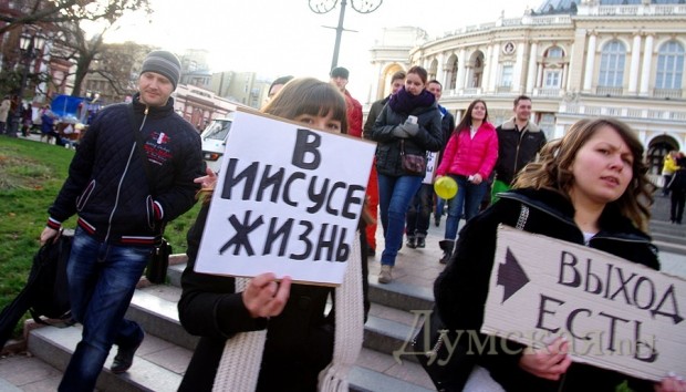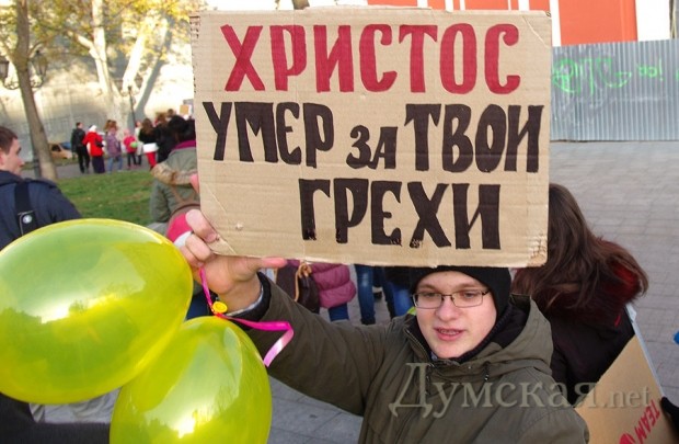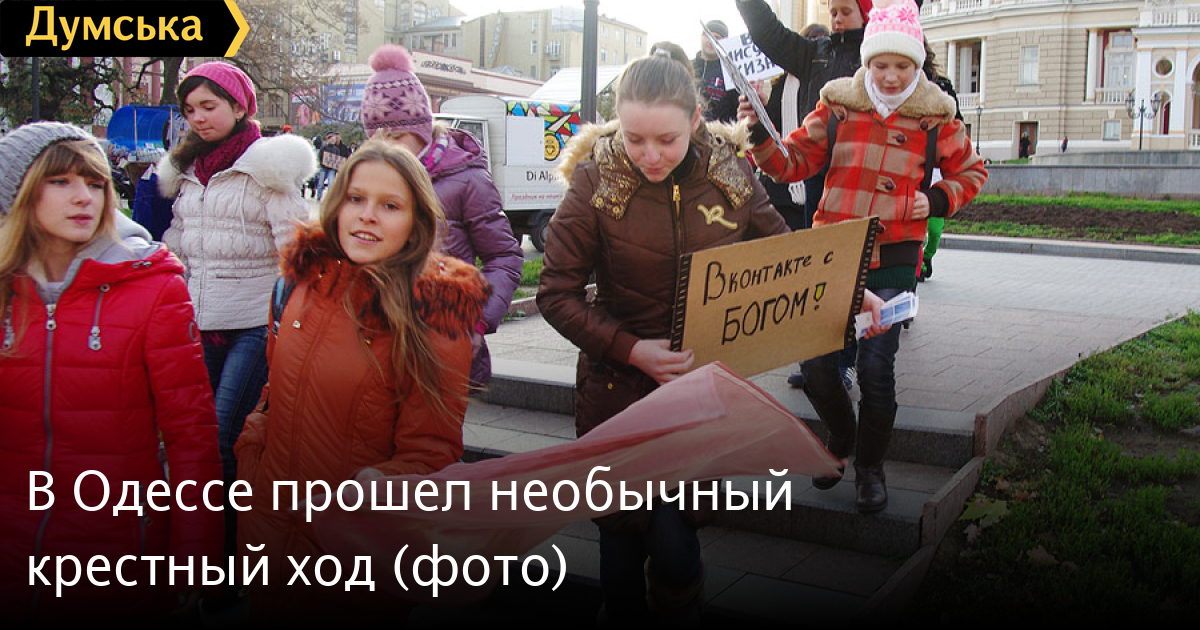 Клерикалы наступают! Необычный крестный ход провели сегодня по центру Одессы прихожане одной из пяти реформаторских церквей. До полусотни молодых и молодящихся людей прогулялись нестройной колонной по центру города. Без икон и песнопений, но с самодельными транспарантами и мантрами в стиле «Я так рад…» Ребята раздавали флаера и приглашали всех вступать в профильные группы в соцсетях.