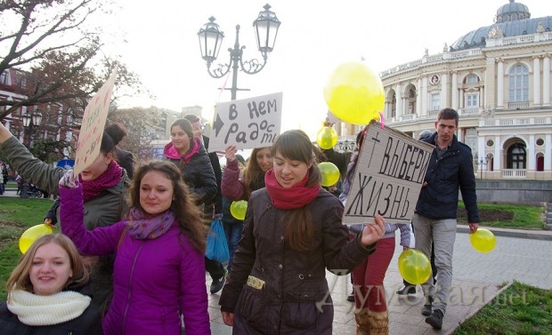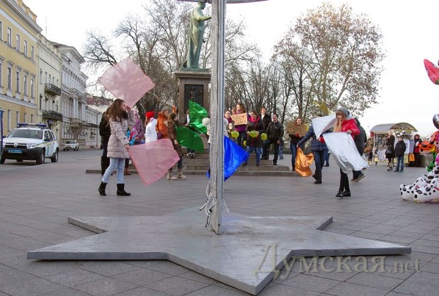 Сначала молодые люди были замечены возле Оперного, после чего дали импровизированный концерт у памятника Дюку, где агитировали сверстников, катающихся на скейтах.