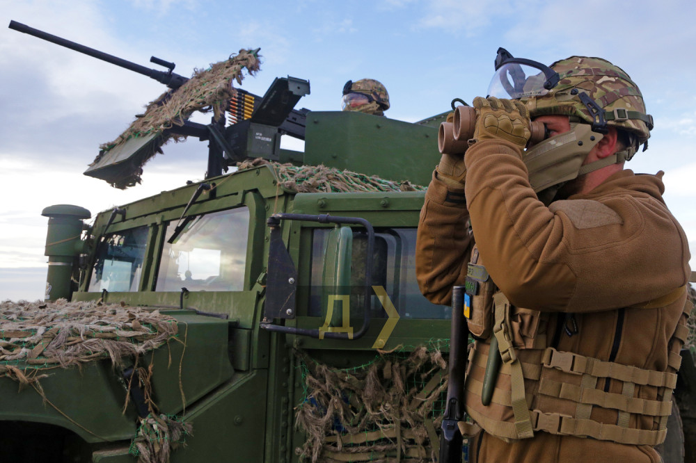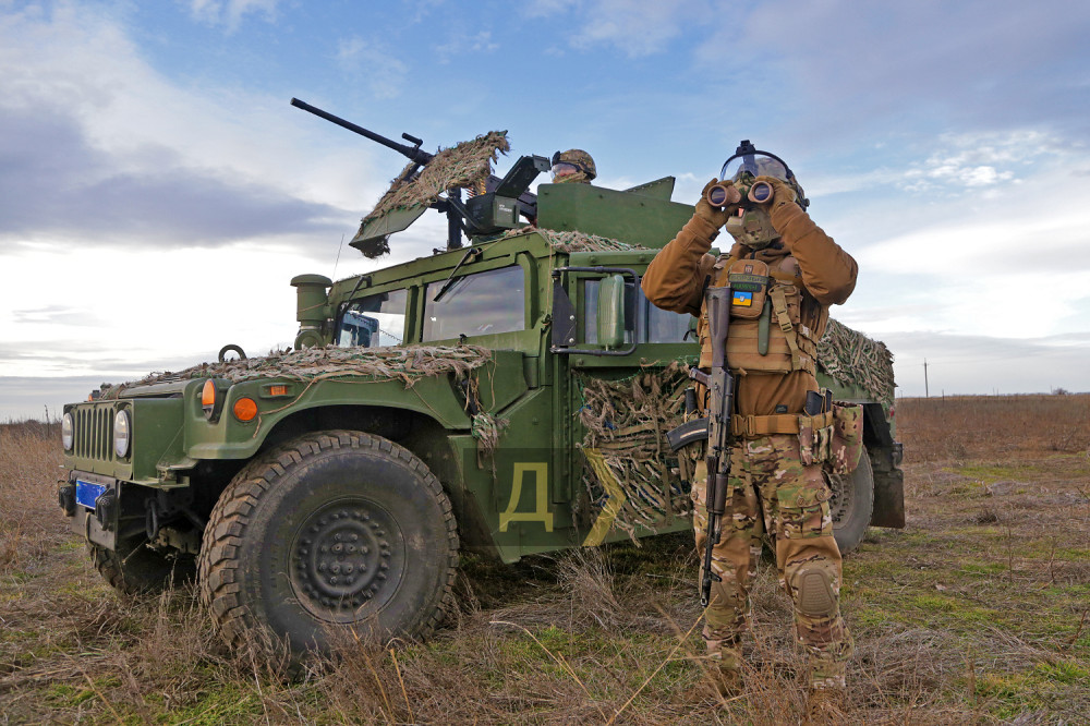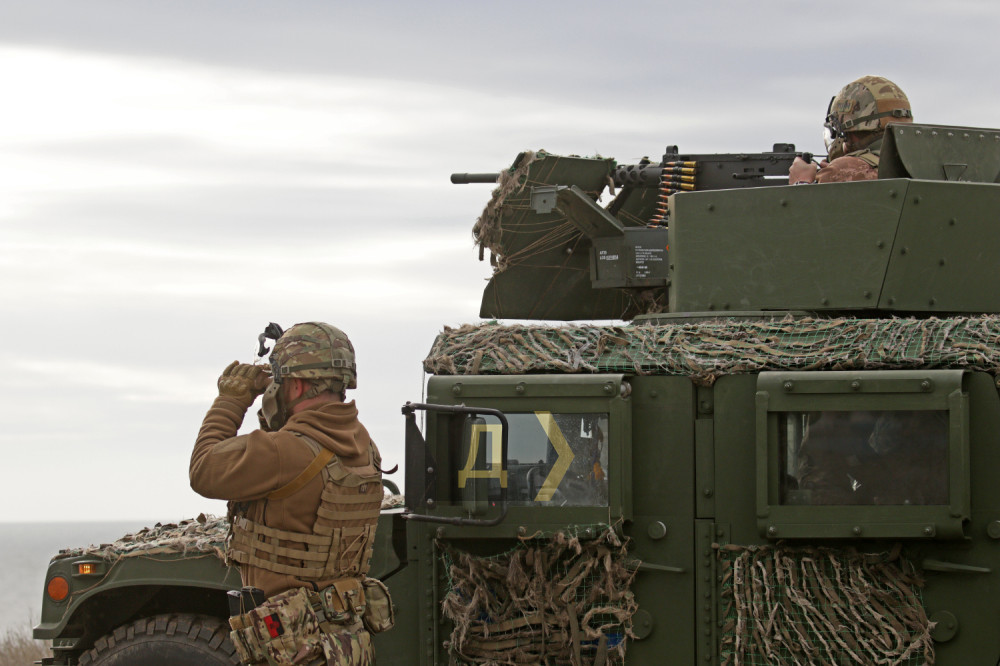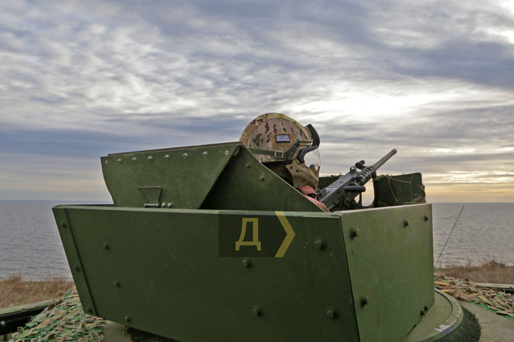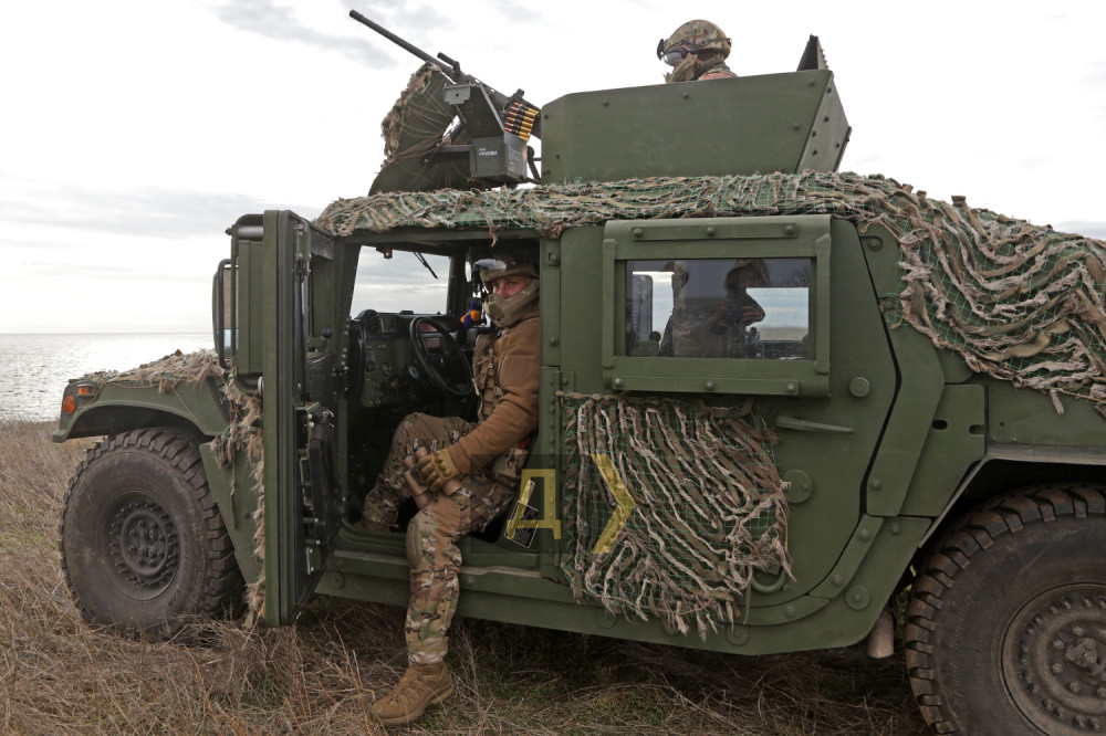 Темно-зелений броньований «Хамві» (HMMWV, — Ред.) раптово, ніби з-під землі, з'явився в прибережному степу, на великій швидкості подолав кілька сотень метрів і зайняв позицію на краю обриву, що нависає над морем.