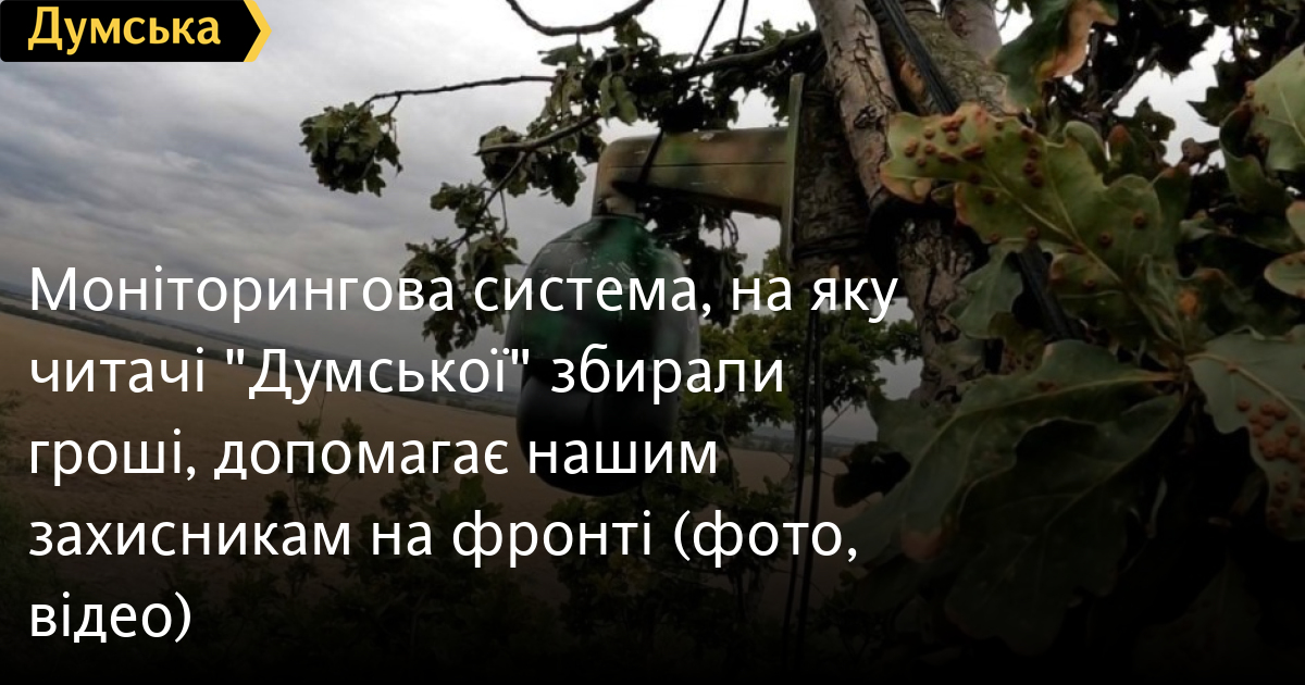 Наші захисники на передовій дякують читачам «Думської» та патронам Гончаренка центрів за моніторингову систему, яка допомагає ефективніше відстежувати супротивника. Гроші на неї ми збирали цього літа.