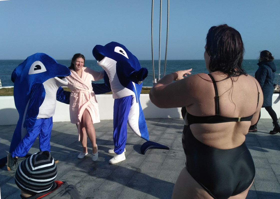Ще однією неофіційною точкою купання став басейн приватного готелю на узбережжі, куди безкоштовно пускали всіх охочих. Морська вода була тут трохи теплішою — близько десяти градусів, проте людей також було небагато.