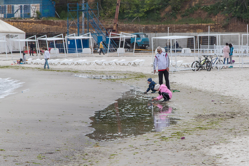 Спустя пять дней после старта курортного сезона погода в Одессе откровенно не пляжная. Однако небольшая часть отдыхающих, особенно спортсмены и молодые родители, все же выбираются на пляжи.