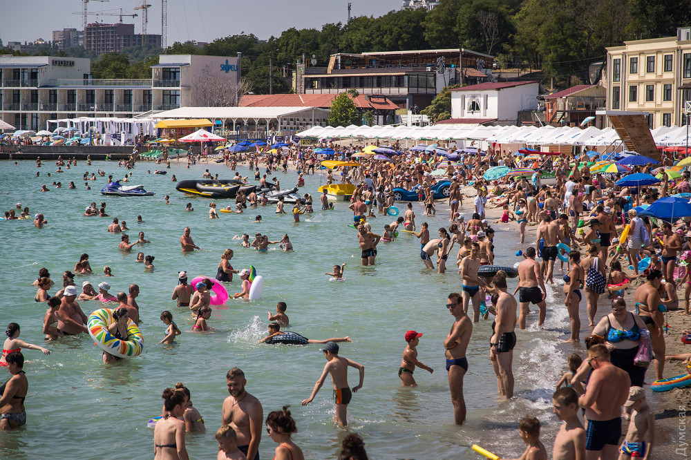 Одесситы и гости города предаются традиционной летней неге: принимают солнечные и морские ванны, дают хорошо заработать различного рода коммерсантам: от продавцов медовой пахлавы до владельцев надувных аттракционов.