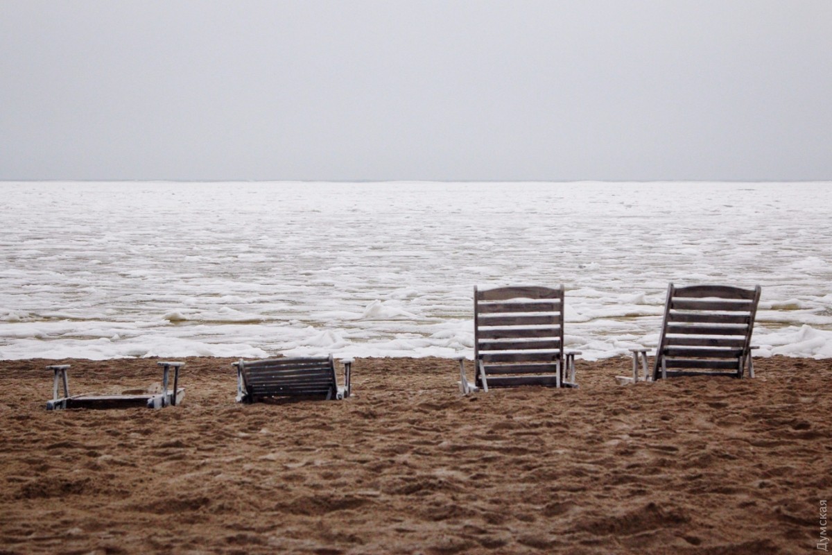 Одесский залив не спешит освобождаться из ледяного плена. Море, насколько хватает глаз, покрыто льдинами, на которых коротают время чайки, утки, бакланы и другие пернатые. Пляжи пустынны и неприветливы. Нет даже котов.