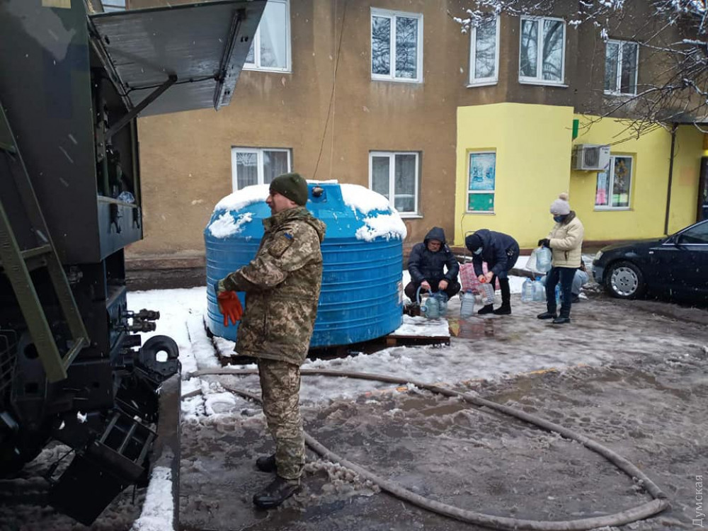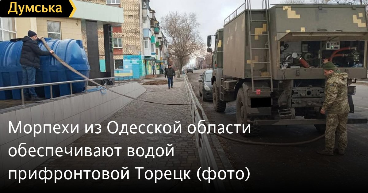 Военнослужащие 35-й бригады морской пехоты имени контр-адмирала Михаила Остроградского, которая базируется в поселке Дачное под Одессой, помогают с подвозом питьевой воды жителям прифронтового города Торецк в Донецкой области.