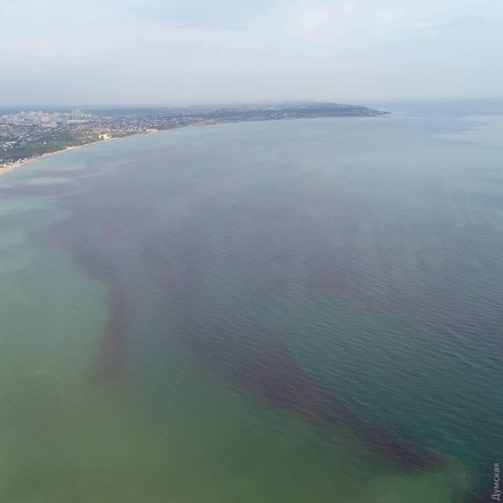 Як повідомляє кореспондент «Думської», з пляжів поверхня моря виглядає неоднорідною.