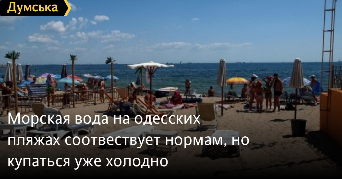 Морская вода на одесских пляжах соотвествует нормам, но купаться уже холодноМорская вода на городских пляжах Одессы соответствует санитарно-микробиологическим показателям и пригодна для водопользования. Об этом сообщил Одесский лабораторный центр Минздрава Украины. Однако насладиться купанием в море в последнюю неделю сентября рискнут немногие. По данным Гидрометцентра Черного и Азовского морей, температура воды составляет 17-18 градусов, а дневная температура воздуха лишь немного выше — до плюс 20. СМЕРТЬ РОССИЙСКИМ ОККУПАНТАМ! Заметили ошибку? Выделяйте слова с ошибкой и нажимайте control-enter |