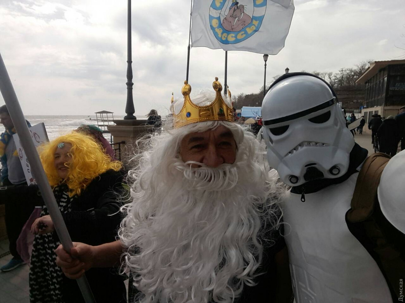 Сегодня в полдень члены клуба «Моржи Одессы» устроили праздничный заплыв на пляже «Золотой берег». Закаленные пловцы переоделись в костюмы различных персонажей и под ободряющие возгласы группы поддержки окунулись в бушующее море. Вода сегодня была около 5 градусов. Из-за шторма, к слову, пляжа практически не осталось. СМЕРТЬ РОСІЙСЬКИМ ОКУПАНТАМ! Помітили помилку? Виділяйте слова з помилкою та натискайте control-enter |