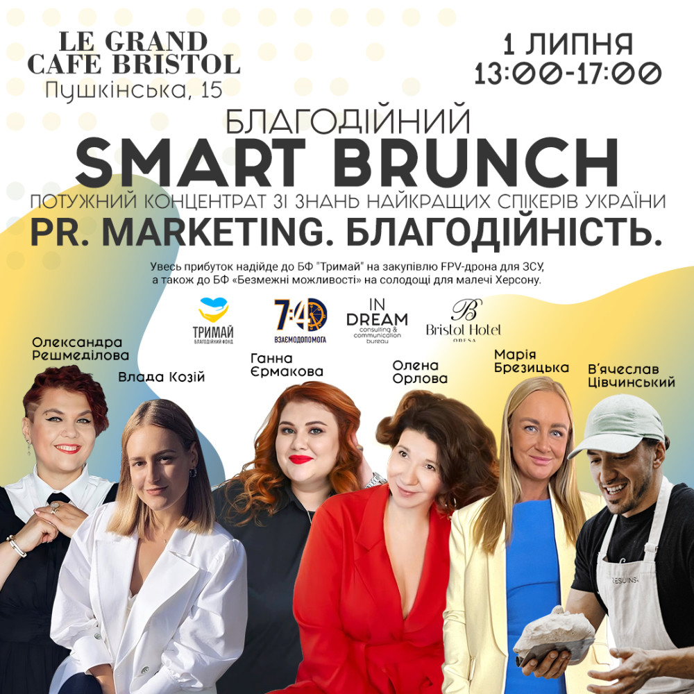 Потужний концентрат зі знань найкращих спікерів України: в Одесі відбудеться благодійний SMART BRUNCH (суспільство)Круті спікери, авторське меню від Шефа та атмосфера на мільйон чекає на відвідувачів благодійного SMART BRUNCH. Головна тема зустрічі — PR, Marketing та благодійність, просування продукту та ідеї в часи максимальної нестабільності та турбулентності. Найцікавіші спікери поділяться секретами свого успіху. Так, маркетологиня, засновниця дитячих садочків Happy time, БФ «Безмежні можливості» Олена Орлова пояснить, що таке благодійний PR і чому просити не соромно. Маркетолог, HR, аналітик системи Human Design Влада Козій розповість про впровадження цієї системи в процеси найму, адаптації та розвитку. Траблшутерка, співзасновниця Consulting & communication bureau «InDream» Ганна Єрмакова підготувала тему «Troubleshooting воєнних часів — врятувати неможливо помилувати». Директорка першого та найкращого в місті Wellness SPA-центру «Формула» Марія Брезицька анонсує виступ «Від фітнесу до психіатрії: як змінити підхід до клієнта в нових реаліях!» Засновник пекарні DOU В’ячеслав Цівчинський готовий розповісти про історію особливого хліба, який побачив Херсон та як співпрацювати з міжнародними платформами. SMM, контент-мейкерка мережі ресторанів — «Lou Lou», «Fratelli», «Suke» Дарія Курілюк відкриє таємниці чуттєвого маркетингу під час війни. Особлива гостя заходу — Олександра Решмеділова (Київ), телеведуча, політологиня, кандидатка філософських наук розповість про політичний PR під час війни, зокрема про найпотужніші fuckup або як ніколи не робити. На вас чекає також бранч від шефа — Олександра Бобришева, на який надихнув хліб DOU, welcome drink, музичний супровід та час на networking. Все це 1 липня, 13:00-17:00 в Le Grand Cafe Bristol, Пушкінська, 15 ЦІНА — від 1 333 грн (знижка від покупки двох та більше квитків) Забронювати столик можна за телефоном +38 073 796 55 00 Увесь прибуток надійде до БФ «Тримай» на закупівлю FPV-дрона для ЗСУ, а також до БФ «Безмежні можливості» на солодощі для малечі Херсону. СМЕРТЬ РОСІЙСЬКИМ ОКУПАНТАМ! Помітили помилку? Виділяйте слова з помилкою та натискайте control-enter |