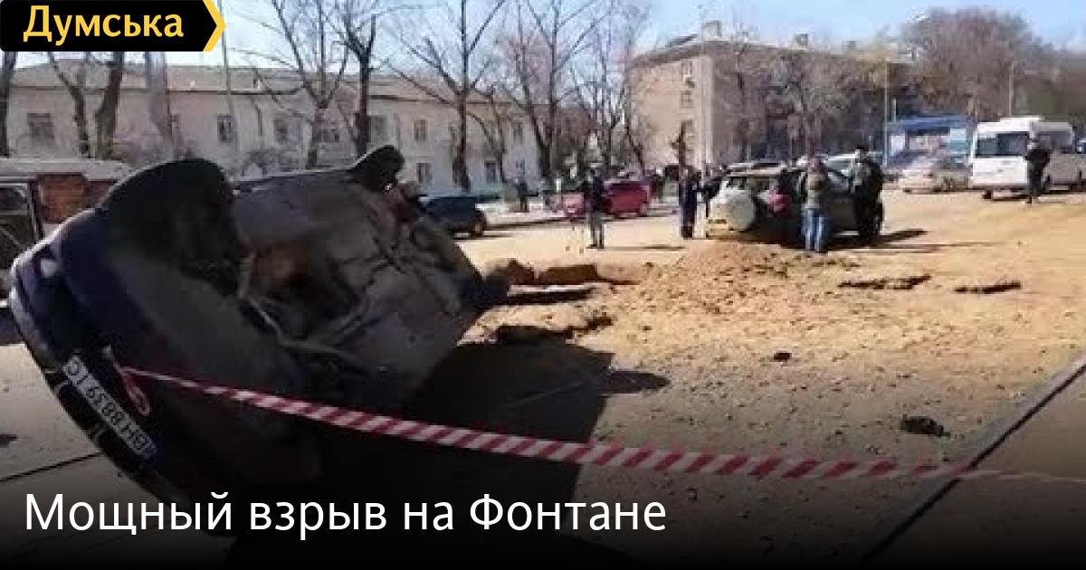 Мощный взрыв прогремел между 6 и 7 станциями Фонтана. Припаркованную машину отбросило на трамвайные рельсы. При этом было повреждено и дорожное покрытие.